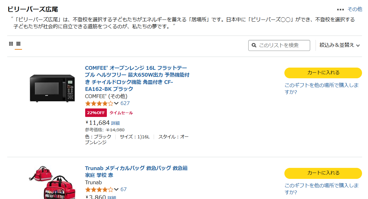 「みんなで応援プログラム」に、ビリーバーズ広尾の欲しいものリストが掲載されました!✨