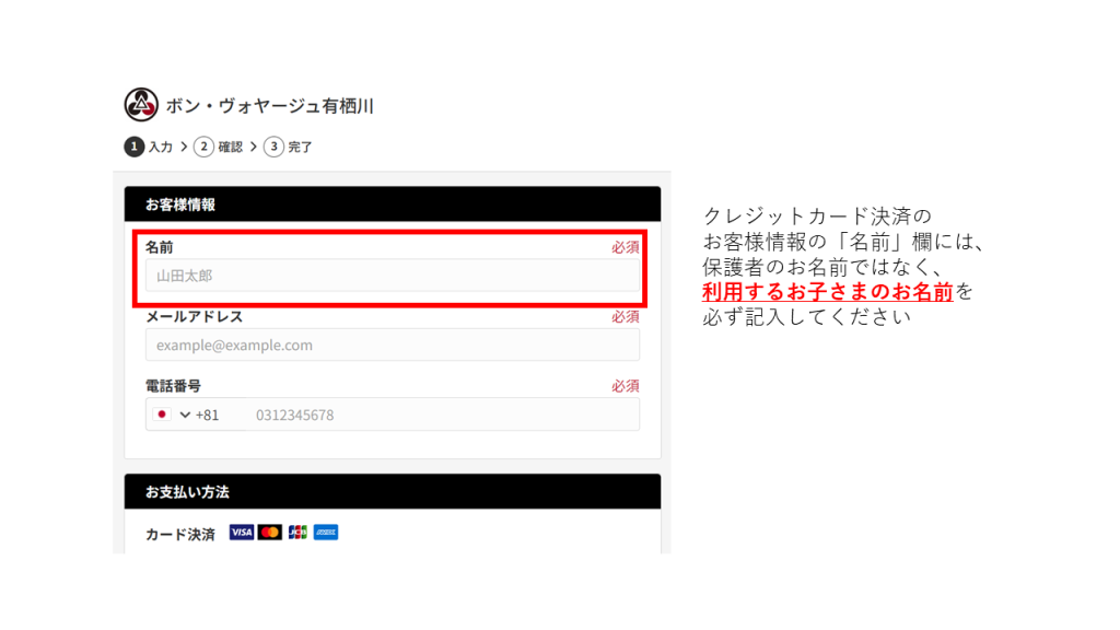 「ビリーバーズ広尾」のご利用にあたっては、クレジットカード決済をお願いしておりますが、カード決済は株式会社子育て支援(サービス名:ボン・ヴォヤージュ有栖川)に業務委託しております点、ご了承くださいませ。